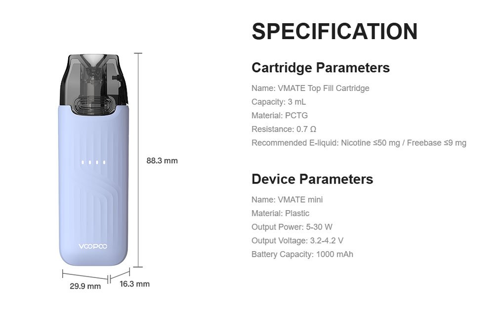 VOOPOO VMATE Mini Pod System – Specifications: